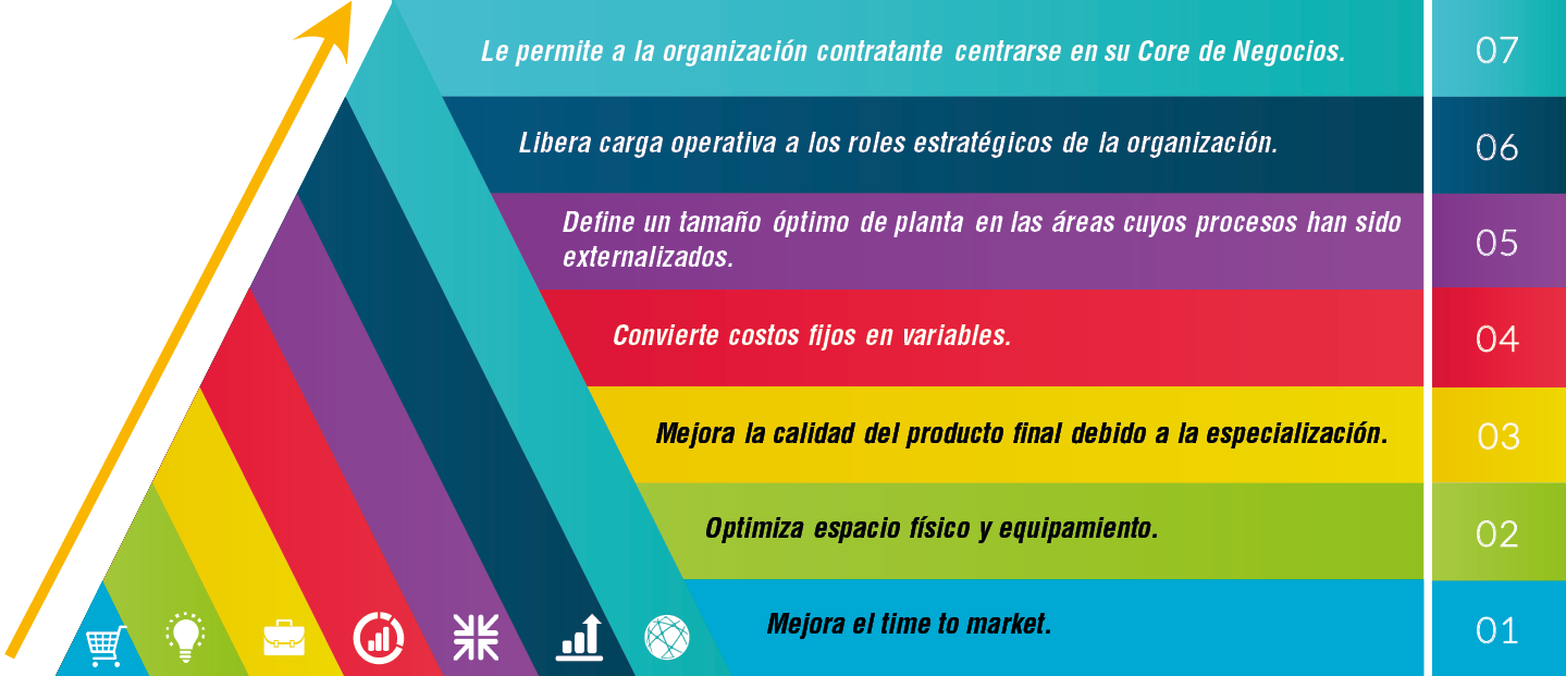 La BPO (Business Process Outsourcing) es un modelo de negocio que externaliza procesos a ser realizados un tercero y genera los siguientes beneficios: